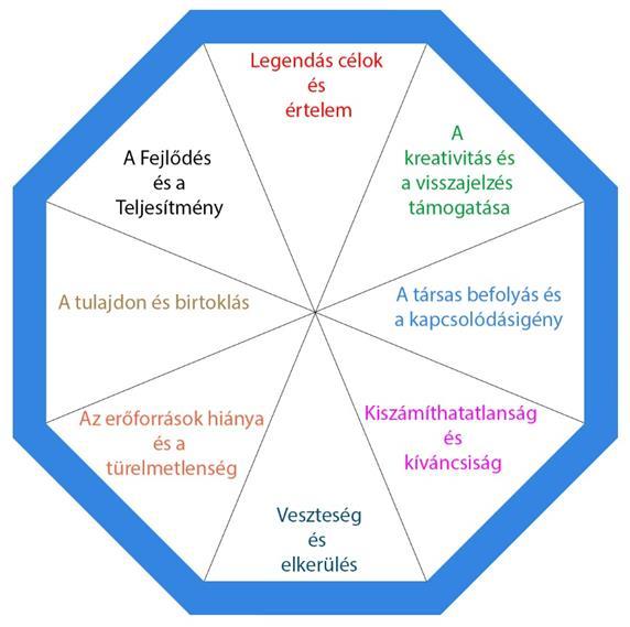 Érdekes, hogy pont a mélypont közepén, 2015-ben jelent meg Chou Yukai (angolosan Yu-Kai Chou) átfogó keretrendszere a játékosítás motivációs vonatkozásairól, amely az (erkölcsileg) “pozitív” és “negatív” típusú motivátorokat is kerek (na jó, nyolcszögletű) rendszerbe fogta. Ennyit a játékosítás humanisztikus céljairól.
