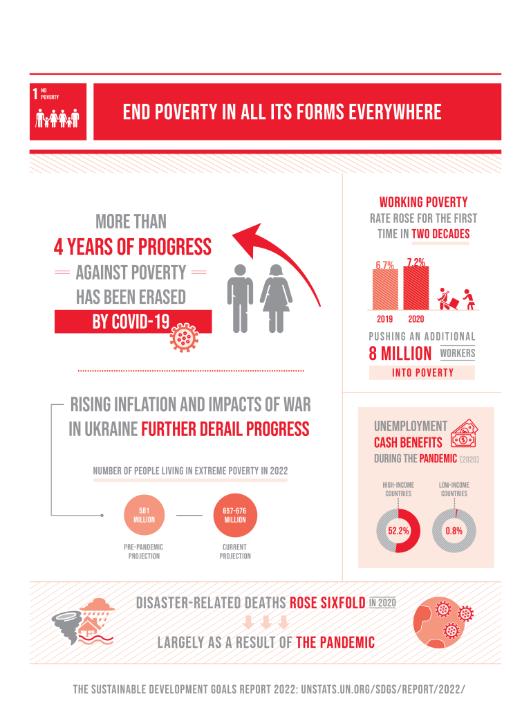 A koronavírus okozta világjárvány mintegy négyévnyi fejlődést vetett vissza. Ezt súlyosbította az ukrajnai háború. Mindezek eredményeként a 2019-es adatok alapján előrevetített 581 millió helyett 2022-ben 657-676 millió ember él mélyszegénységben.